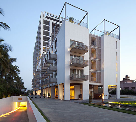 These large apartments (5,000 sft.) have verandahs on three sides and are organized in keeping with the cadence of the structure.