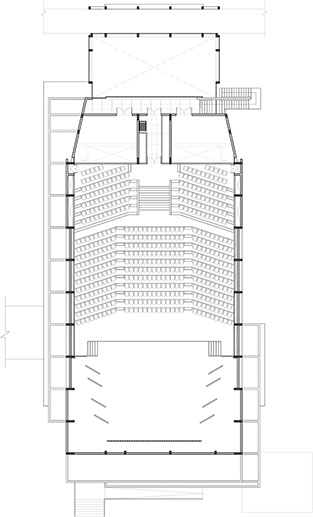 This auditorium is situated at the far end of a dense school campus. We added a large public room at the entrance to the auditorium which offers a place of pause along the main spine of the campus leading to the refectory and dormitories from the