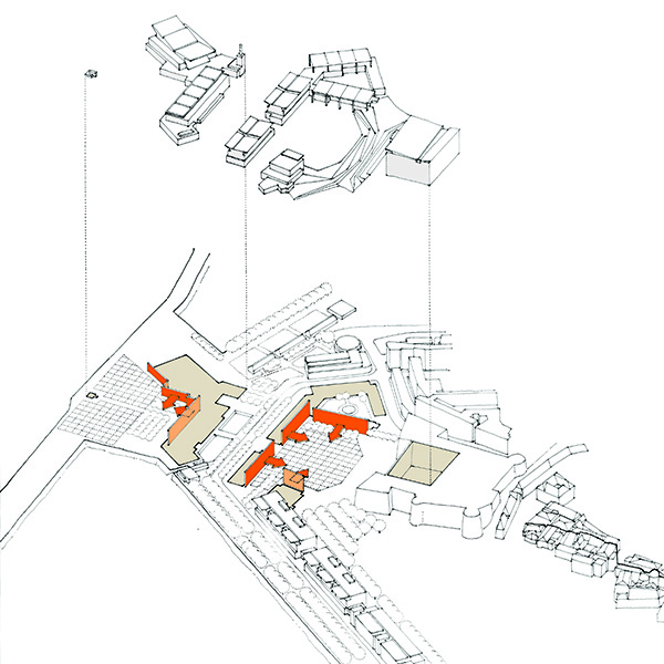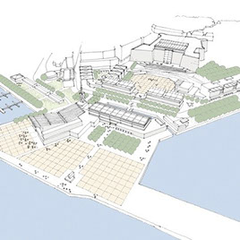 Our proposal suggested that we could reconnect the historic core of Crotone to the waterfront via new public institutions that served to mitigate the 30m level difference and created new public places along the waterfront. The new uses proposed included public museums, a performing arts center, a market, office buildings, housing, a city room, a library, and a marina.