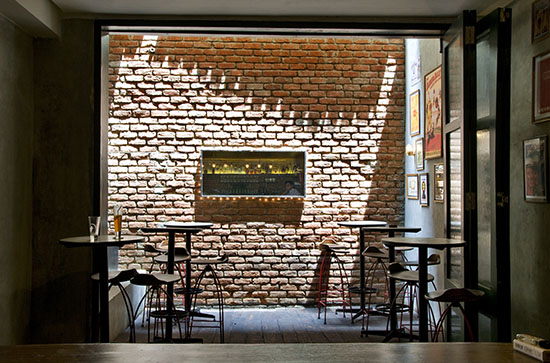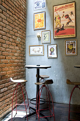 Monkey Bar is a 3,000 sft. Gastro Pub. There are two primary levels and a small mezzanine. The brief from the client was for an informal, cozy place with eclectic furniture, found objects, and a non-chic interior. All the furniture was designed by the firm and most of the accessories (lights, picture frames, art, etc.) were sourced by the client.