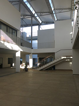 The central yard is surrounded by other spaces of a more intimate scale and overlook terraces from the first floor. Though all of these spaces are visually connected they are distinct and serve to accommodate different scales of congregation. Their proximity to classrooms, the art room, or other such enclosed rooms affect the nature of these spaces.