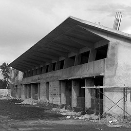 Situated in a dense Tamarind orchard, the plan derives its structure from this planting grid. Built on a tight budget the orgnisation of structure and fenestration give the building its proportion, rhythm and clarity.