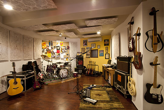 This 1700 sft. studio for a Bangalore based rock band includes three sound-proof jam rooms, practice pods for instruction, an office for three and a small retail outlet. At the core of this commission is the acoustical treatment of the jam rooms and we worked with an acoustical engineer to design the sound proofing components.