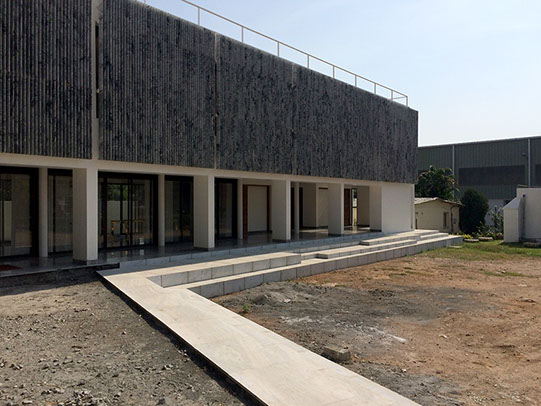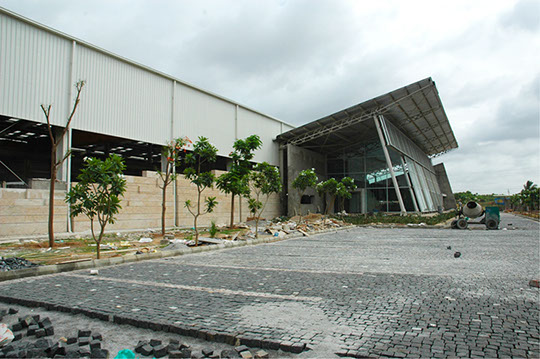 We have been working on the master plan, streetscape design and a few buildings on the 24 acre campus of this granite processing facility. We have completed an 80,000 sft storage warehouse (with Tata BlueScope), a Visitor's Centre, an addition to the staff refectory, expansion of the central stores, and are currently working on a corporate guest house.