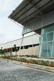 Situated on the Bangalore-Chennai highway the Visitors Centre, attached to the north east corner of the new warehouse makes a strong impression exposing both a large stone clad feature wall and a glass facade revealing an illuminated internal volume to the highway.